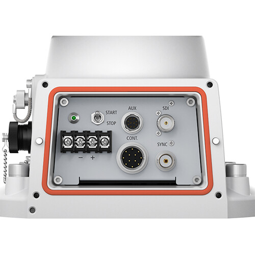 La cámara puede utilizar un controlador externo a través de RS-422 o el protocolo serial NU patentado de Canon utilizando el controlador PTZ RC-IP100 opcional. también un limpiador de lentes incorporado para que no tenga que limpiar el lente usted mismo si se moja o se ensucia. También hay un puerto AUX en la parte posterior para que pueda agregar una unidad de lavado opcional.