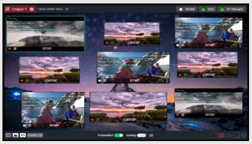 Admite protocolos NDI | HX 2.0, SRT, RTSP, RTMP, HLS, TS-UDP; decodificación de hasta 9 canales; vista previa de imágenes y videos