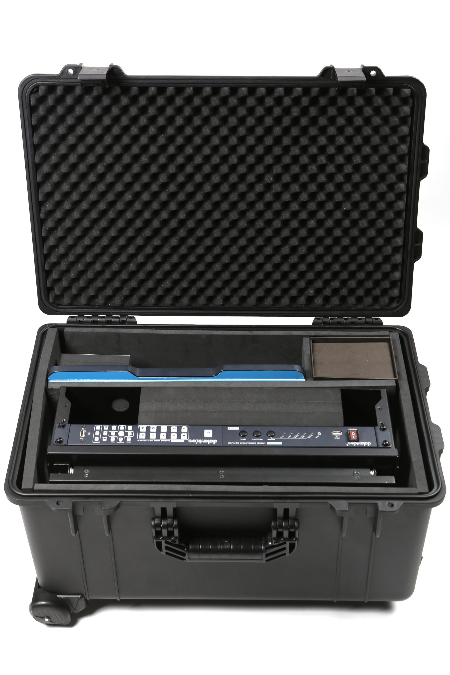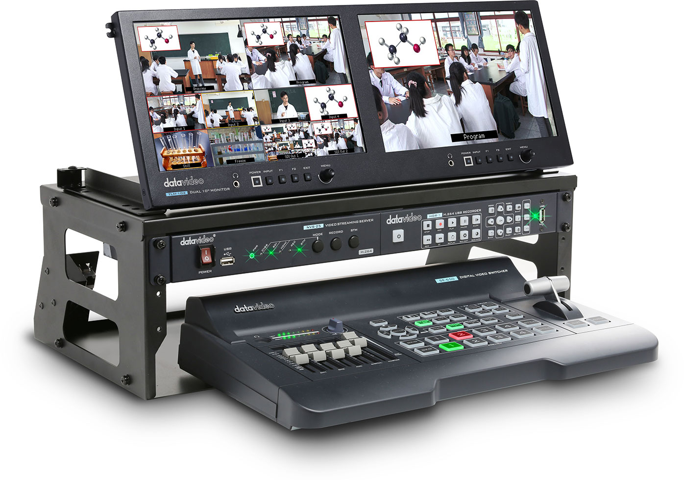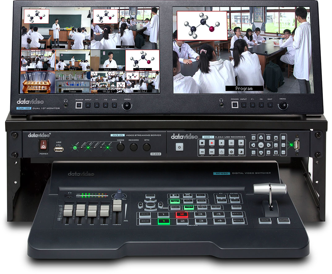 GO 650 Studio, Imagínese si todo su equipo de producción de vídeo se ajusta dentro de una caja portátil. Hacer que el transporte de su equipo de un trabajo a otro mucho más fácil. GO-650 STUDIO es un kit completo que incluye un switcher de video SE-650, monitor dual TLM-102 para previsualización y programa, codificador de flujo NVS-25 y grabador USB H.264 HDR-1, todos conectados, y empaquetado en un case duro rugoso. ¿Qué más se necesita aparte de algunas cámaras, que es donde entra en juego el GoKit de 2 cámaras. Empareje estos dos GoKits juntos y puede tener un flujo de trabajo de producción de vídeo completo. Debido a la portabilidad de estos GoKits, son ideales para diversas aplicaciones tales como adoración, acontecimientos vivos, seminarios, acontecimientos que se divierten de la escuela, y presentaciones corporativas.