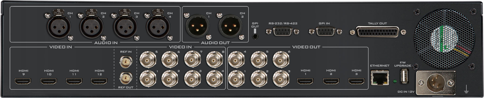 • 12 Video Input Channels: 8 x SDI and 4 x HDMI