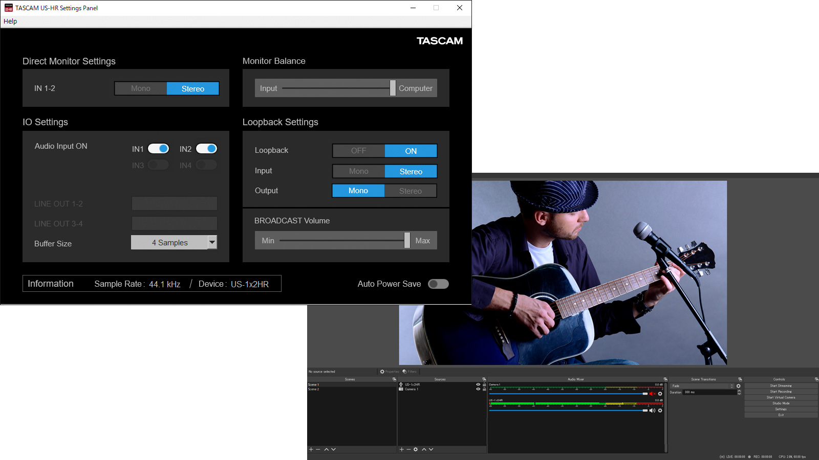 La US2x2HR puede ser usado con computadoras o teléfonos inteligentes para crear fácilmente podcasts o transmisiones en vivo. El audio se puede cambiar entre estéreo/mono, y la función de loopback permite que el audio de la computadora sea devuelto al software de streaming para ser reproducido durante las transmisiones en vivo. La US-2x2HR también soporta OBS, que es popular y usado en todo el mundo.