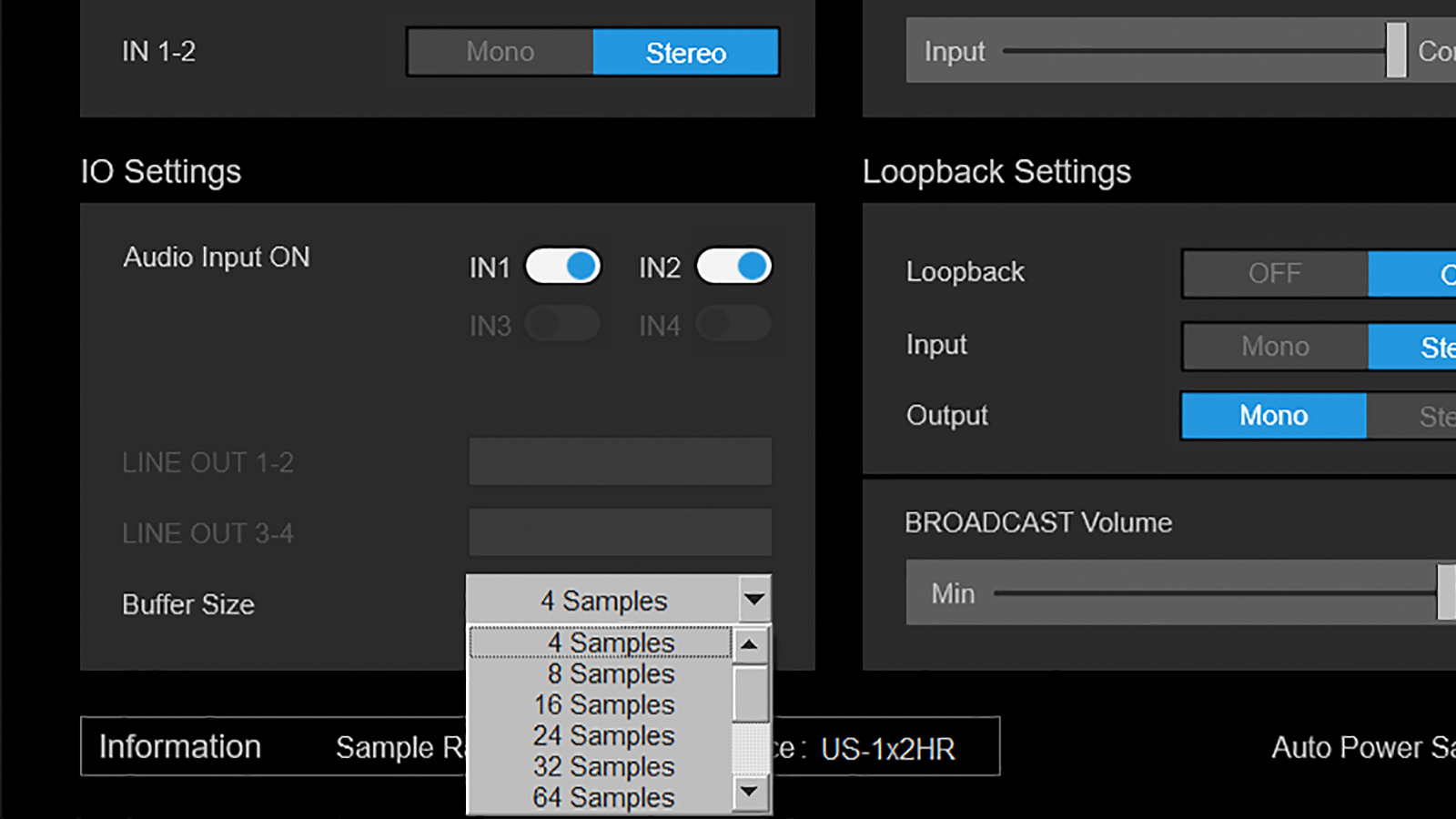 - Función de loopback seleccionable estéreo/mono (Windows, Mac, iOS, iPad OS)