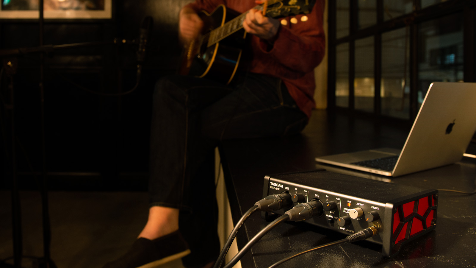 El US-2x2HR está equipado con 2 entradas de micrófono/línea con soporte de entrada de guitarra que pueden utilizarse en varios entornos de producción musical/multimedios como grabaciones simultáneas de voz/guitarra, así como grabaciones de sonido de alta calidad para la producción de vídeo. La unidad también está equipada con un puerto USB-C que se alimenta fácilmente mediante el bus USB.