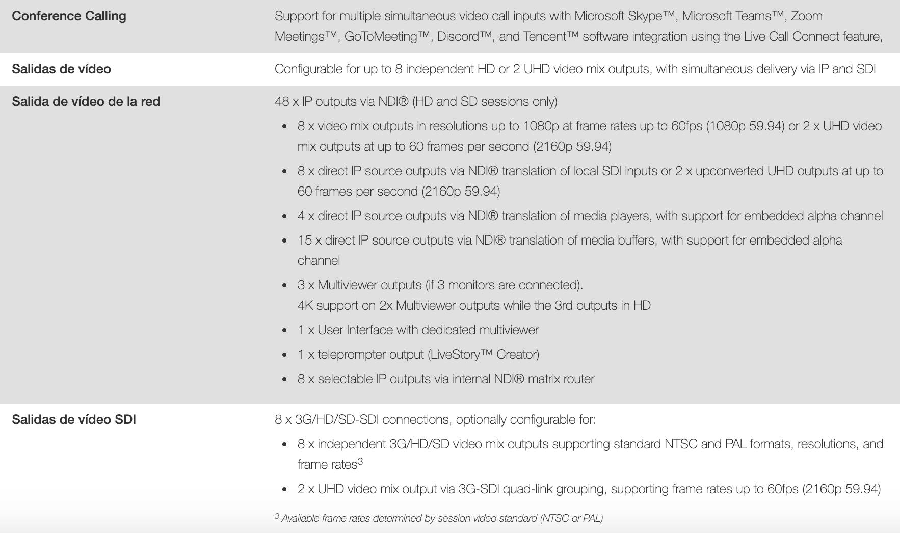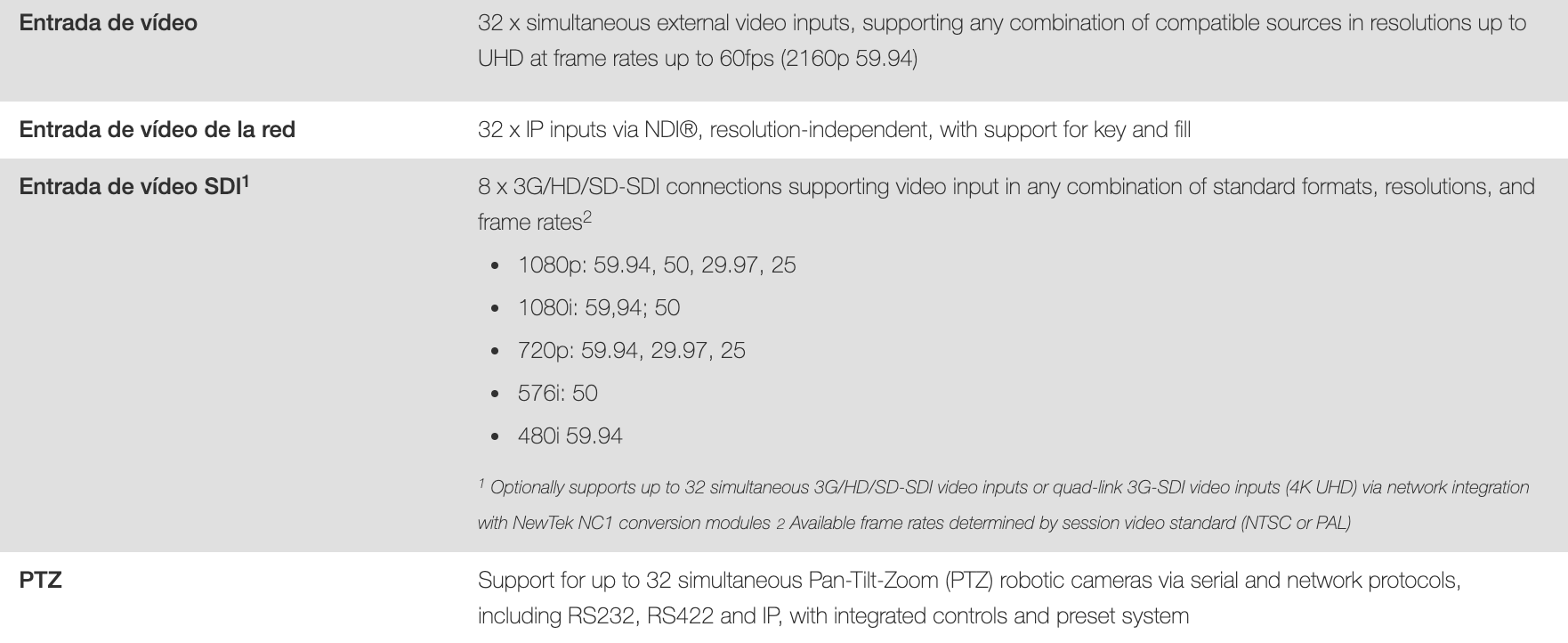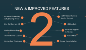 Las características y capacidades descritas se refieren a la funcionalidad TriCaster® y NewTek VMC ™ y están sujetas a cambios sin previo aviso. Para obtener información más detallada sobre las características y capacidades de estos y otros sistemas de producción en vivo de NewTek, consulte las guías de usuario de los productos respectivos disponibles aquí .